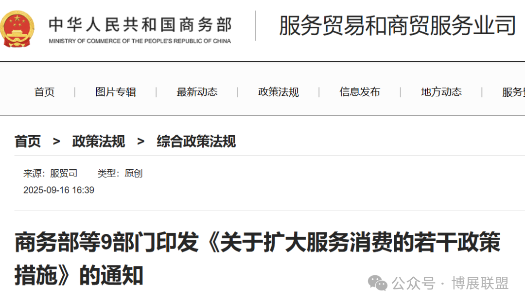近日,商务部等9部门联合印发《关于扩大服务消费的若干政策措施》(以下简称《政策措施》)。《政策措施》全面贯彻落实党中央、国务院决策05 2025-09 -